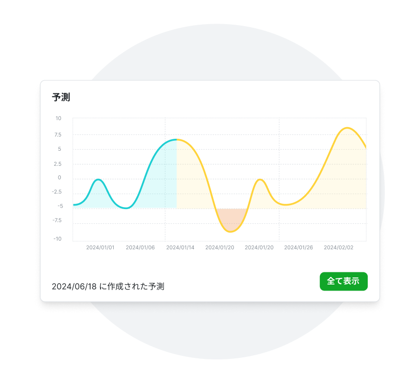 「月末にいくら残るか」「給料や税金を払って足りるか」を自動で予測。 必要な資金をあらかじめ準備でき、資金ショートの不安をなくします。